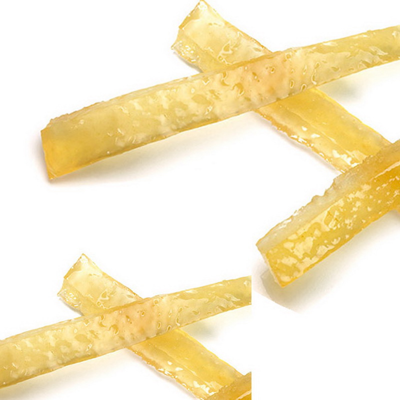Bastones rectos de piel de limón confitados,de 74ºBrix, calibrados en 6-7 cm de largo, de color amarillo, textura firme y sabor dulce, característico del producto. Certif. Kosher.