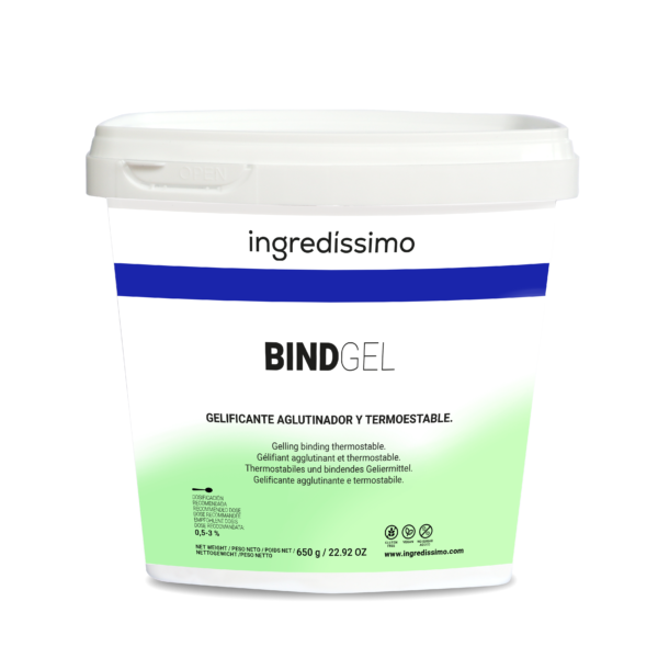 Gelificante: Alginato sódico (E 401), estabilizadores: sulfato cálcico (E 516) y difosfato de tetrasodio (E 450iii).