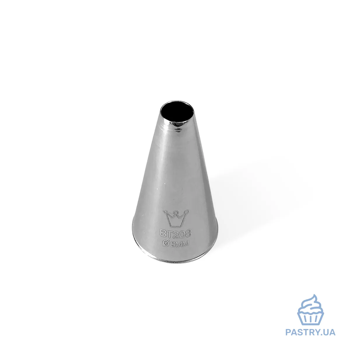 Boquilla de acero inoxidable para sac à poche o manga pastelera con forma particular. Esta boquilla no presenta ninguna soldadura, garantizando una salida uniforme del producto y una alta resistencia.