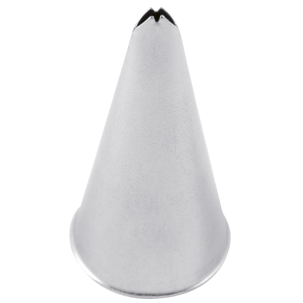Boquilla de acero inoxidable para sac à poche o manga pastelera con forma de hoja. Esta boquilla no presenta ninguna soldadura, garantizando una salida uniforme del producto y una alta resistencia.