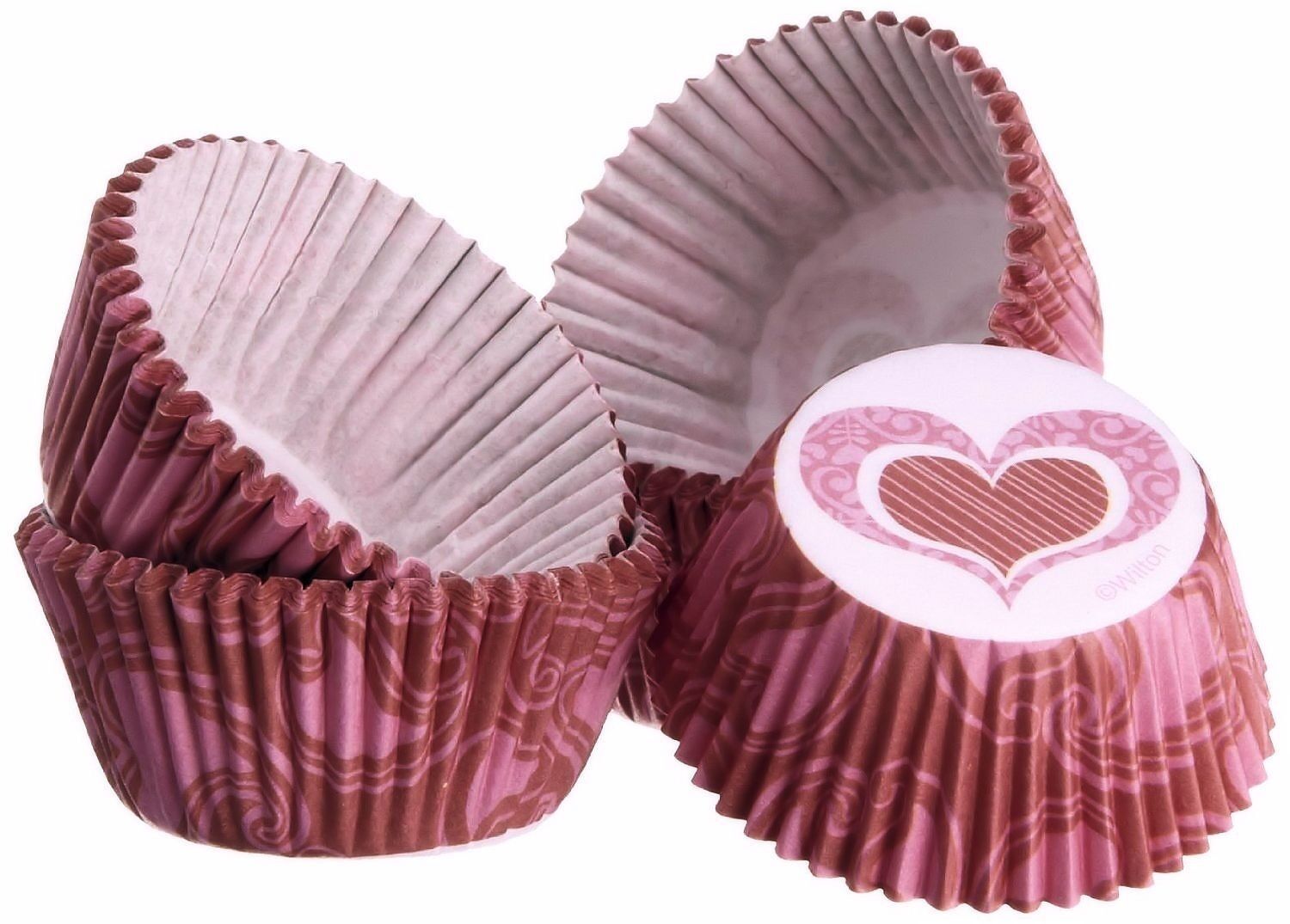 Mini molde de papel con un corazón rosa y rojo que será perfecto para tus mini cupcakes y muffins de San Valentín
