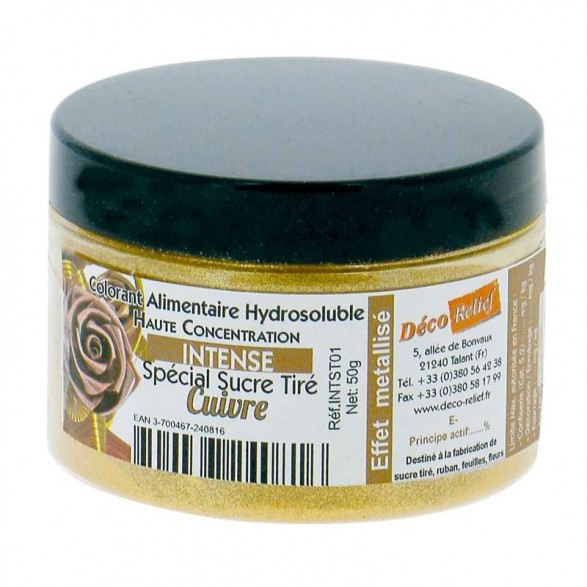 Este colorante alimentario en polvo soluble en agua para azúcar extraída con efecto metálico de cobre aportará un efecto metálico único a sus piezas artísticas de azúcar o para decoraciones de pasteles.