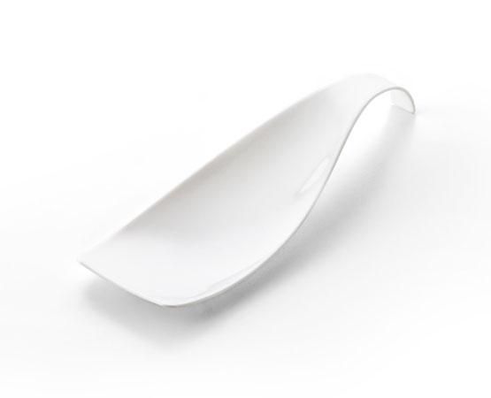 Cuchara degustación blanca de la Vajilla de catering Wave. Moderno, innovador y atractivo.Un producto de cuidado diseño y acabado estético excelente siguiendo las últimas tendencias de cocina en el sector de catering. Fabricado en Poliestireno de alta densidad (PS). 100 % reciclable, material de excelente presencia, brillo y acabado superficial propio de un servicio de catering de alta gama.