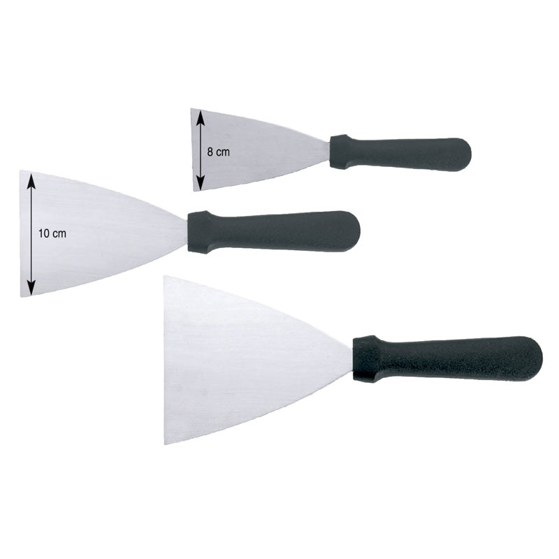 Espátula triangular de acero inoxidable.