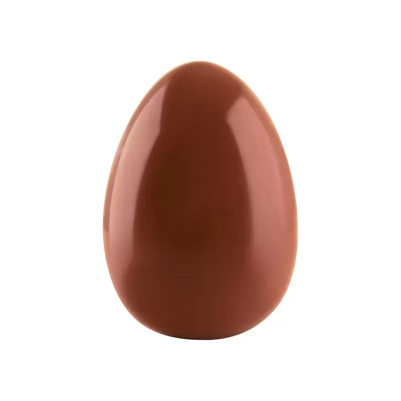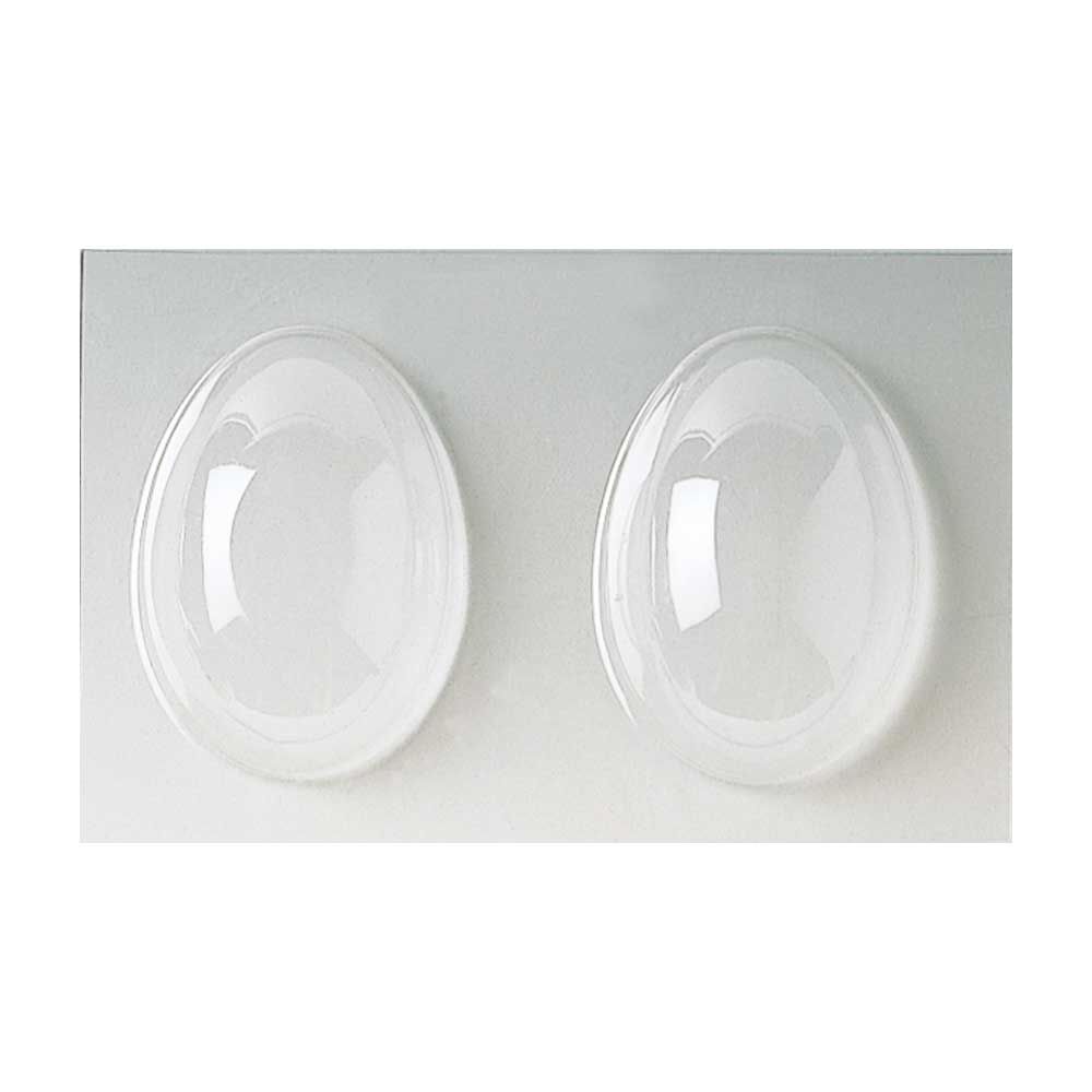 Molde de plástico termoformado ligero y versátil para crear medios huevos de Pascua de chocolate en tamaños grandes.
