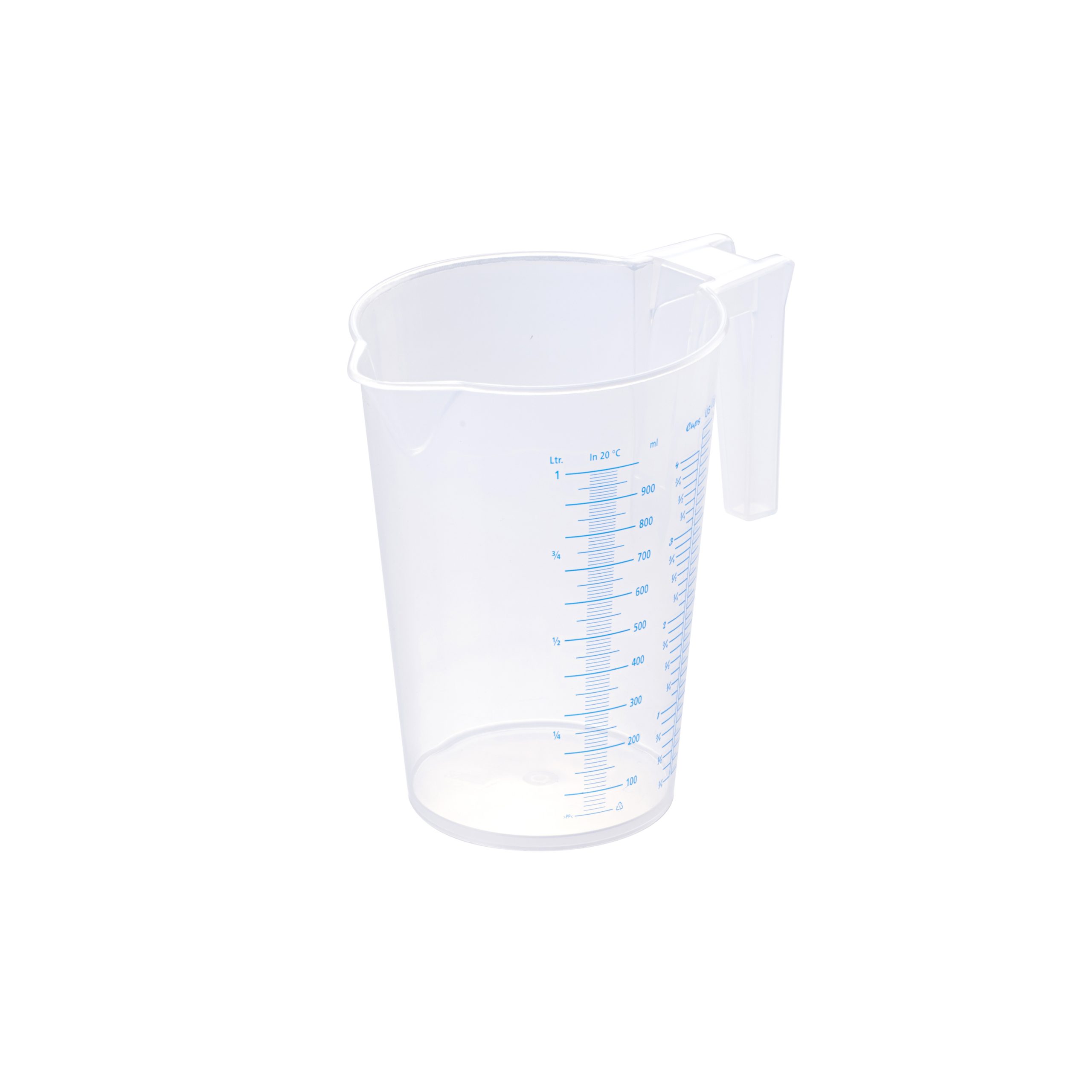 Vaso medidor de plástico. Medidas para distintos ingredientes solidos y líquidos.