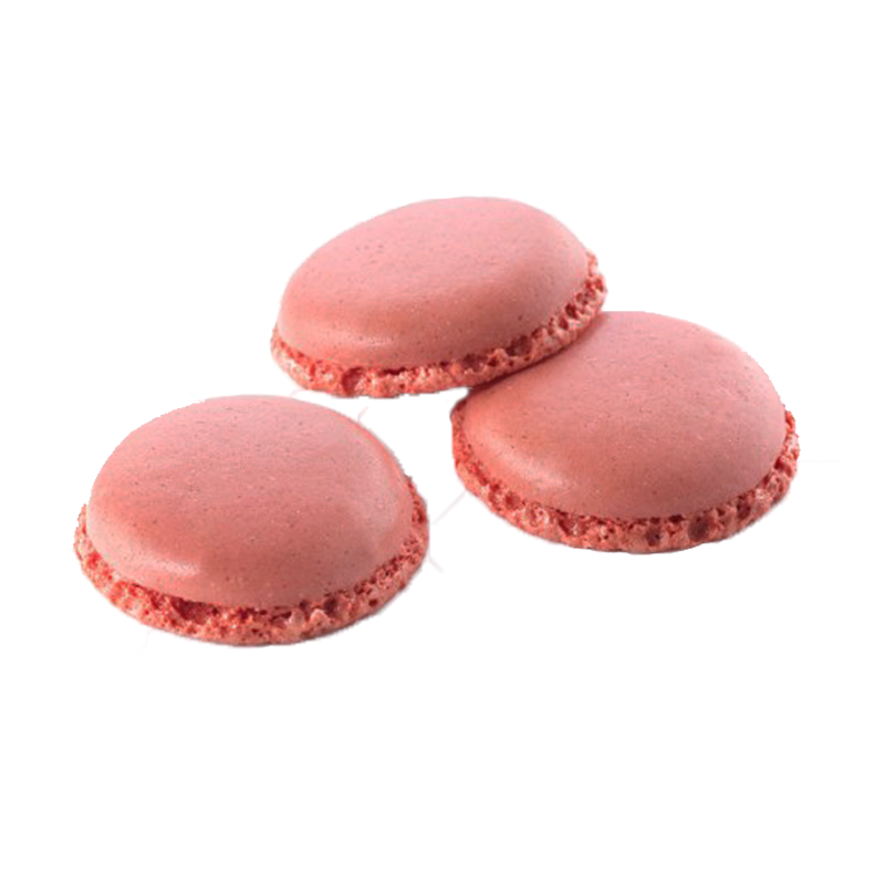 Conchas o galletas de macarons de frutas del bosque listas para ser rellenadas, adornar pastelería, complementos para helado, etc.
