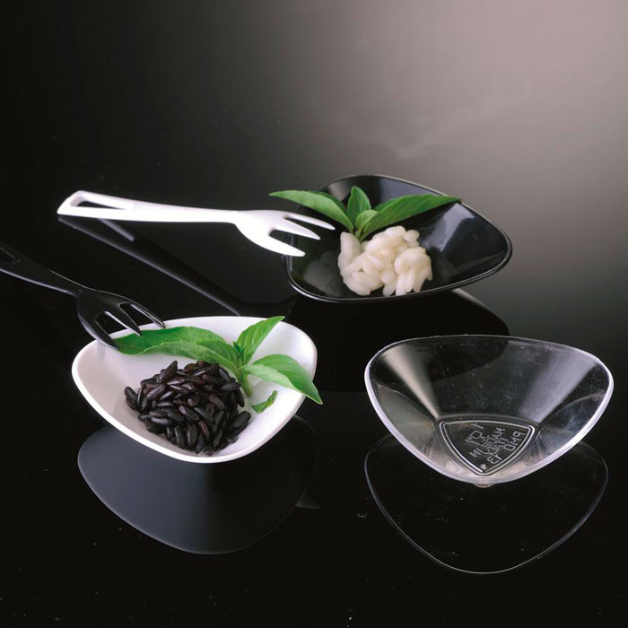 La compañía italiana ha elegido solo los materiales plásticos más finos preparados para el uso alimentario. Estos mini platos acompañan armónicamente al resto de piezas en la mesa con su diseño elegante.