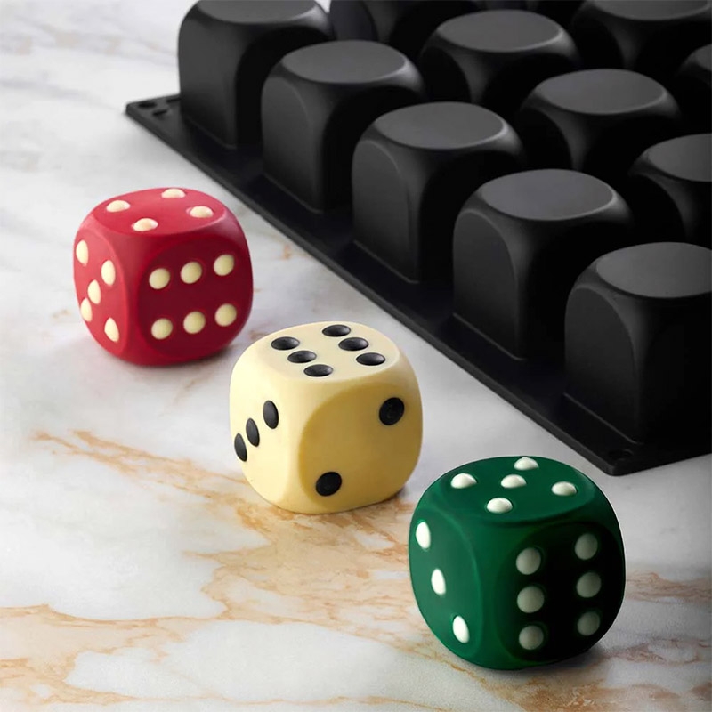 Molde de silicona alimentaria Pavoflex PX43107 Dado, de Pavoni. Molde: 50 x 50 x h50 mm. 20 cavidades de 120 ml.