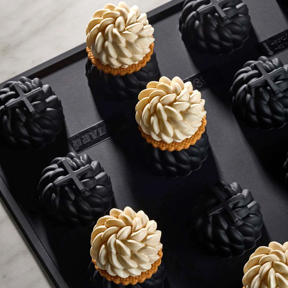 La calidad y precisión de los moldes Pavoflex de Pavoni Italia ofrecen la posibilidad de crear postres con detalles extremadamente refinados. Además de satisfacer el paladar, los postres elaborados con estos moldes tienen el potencial de ser verdaderas obras maestras visuales, deleitando la vista de los invitados.