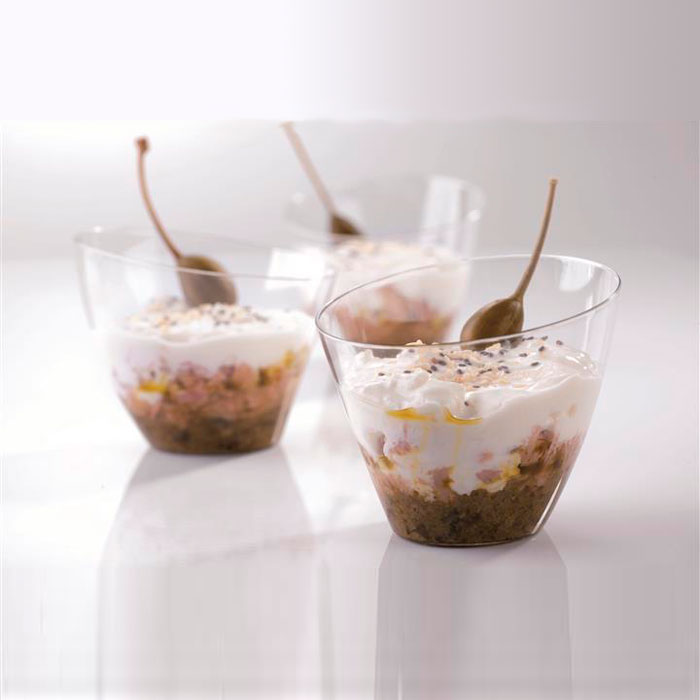La compañía italiana ha elegido solo los materiales plásticos más finos preparados para el uso alimentario. Los vasos son transparentes para hacer parecer la comida todavía más apetecible y alentar a los Chefs a experimentar con nuevas recetas.